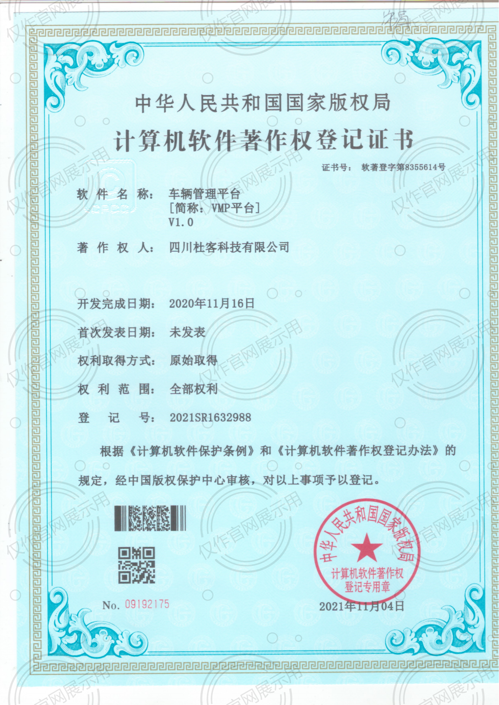 计算机软件著作权登记证书